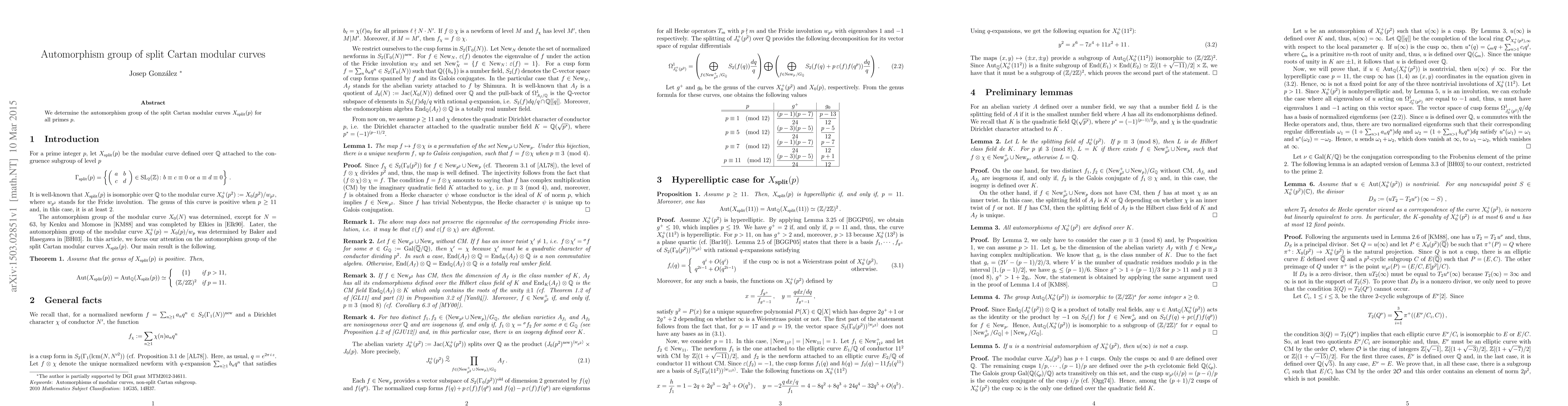 The paper identifies the automorphism group for split Cartan modular curves $X_{\operatorname{split}}(p)$ across all primes $p$, revealing the structure and symmetries inherent in these mathematical objects. The findings contribute to the understanding of modular curves and their automorphisms in algebraic geometry.