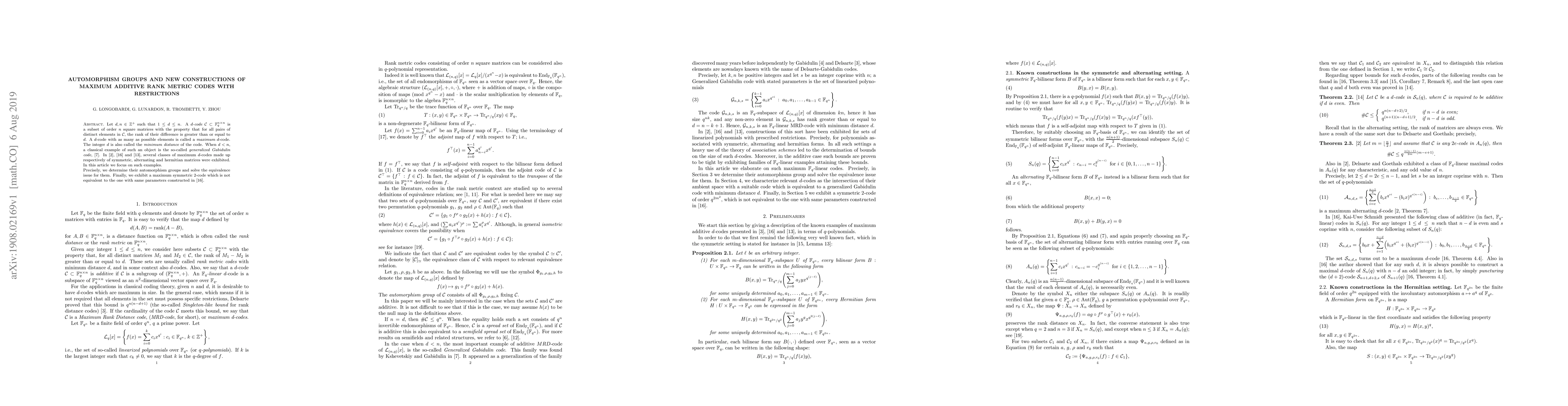 Researchers explored maximum additive rank metric codes with restrictions, focusing on symmetric 2-codes and determining their automorphism groups to show a new non-equivalent example.