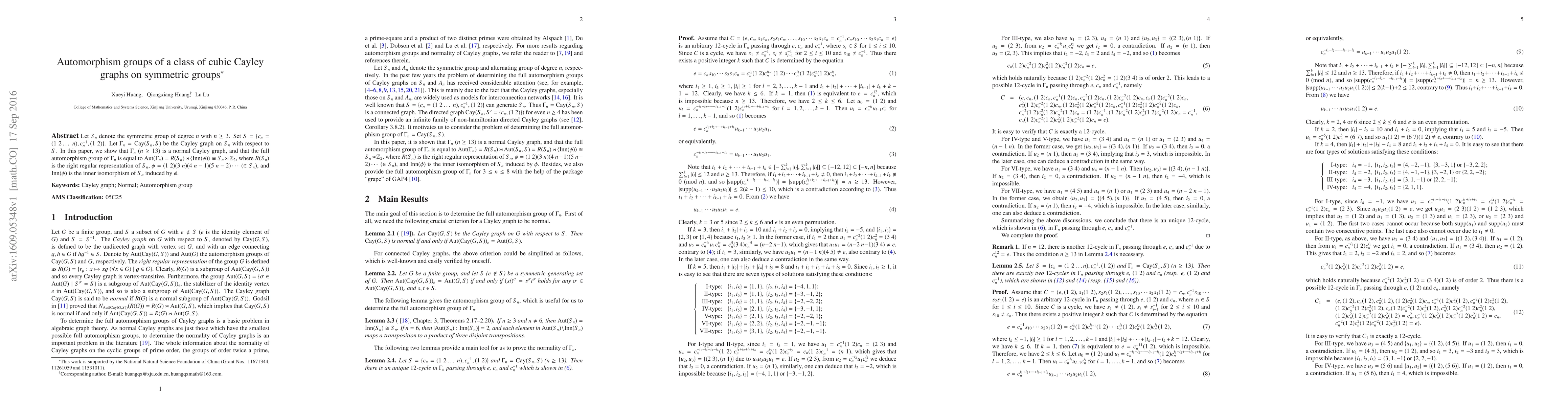 This paper investigates the automorphism groups of Cayley graphs $\Gamma_n$ derived from the symmetric group $S_n$ with a specified generating set. It concludes that for $n \geq 13$, $\Gamma_n$ is a normal Cayley graph with its full automorphism group isomorphic to $S_n \rtimes \mathbb{Z}_2$.
