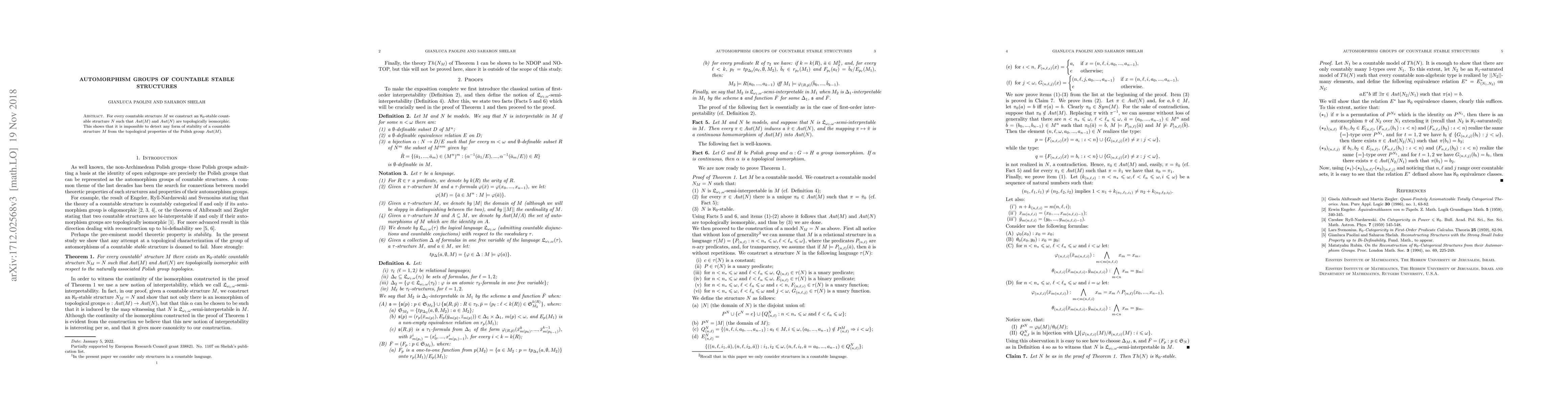 For every countable structure $M$ we construct an $\aleph_0$-stable countable structure $N$ such that $Aut(M)$ and $Aut(N)$ are topologically isomorphic. This shows that it is impossible to detect any form of stability of a countable structure $M$ from the topological properties of the Polish group $Aut(M)$.