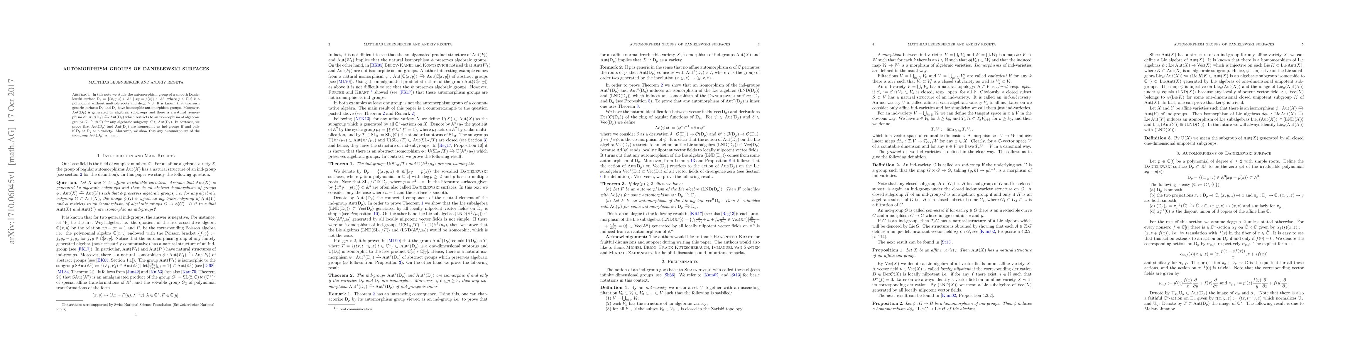 This paper investigates the automorphism group of Danielewski surfaces, demonstrating that while their automorphism groups are isomorphic as ind-groups, they are isomorphic as varieties only if the surfaces themselves are isomorphic. It also proves that any automorphism of the ind-group of automorphisms is inner.