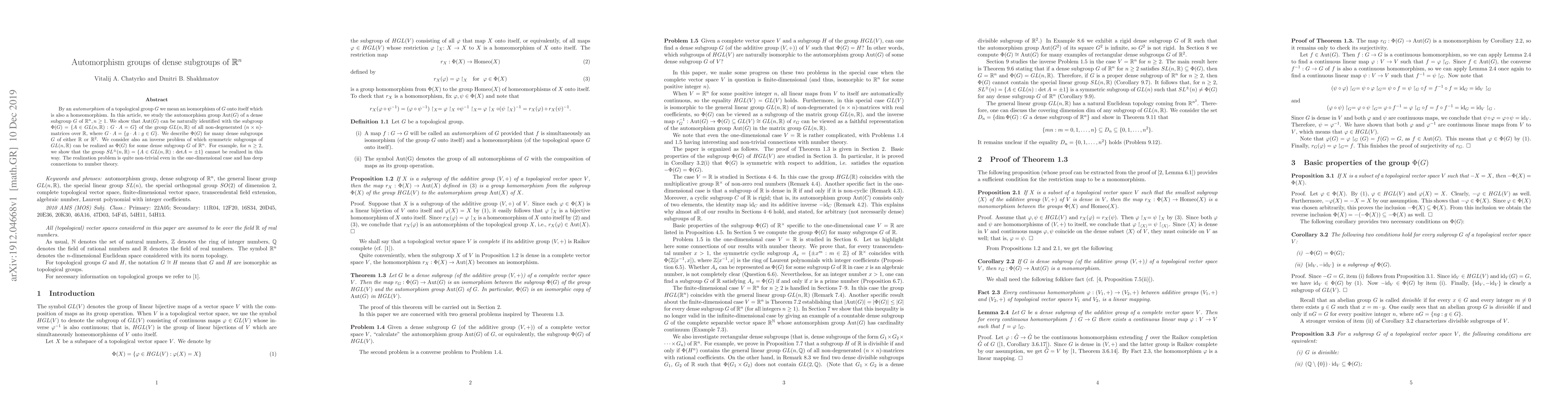 This paper investigates the automorphism group of dense subgroups of R^n, showing that it corresponds to a specific subgroup of the general linear group. It also explores the inverse problem of realizing symmetric subgroups of the general linear group as automorphism groups of dense subgroups, highlighting the complexity and connections to number theory.