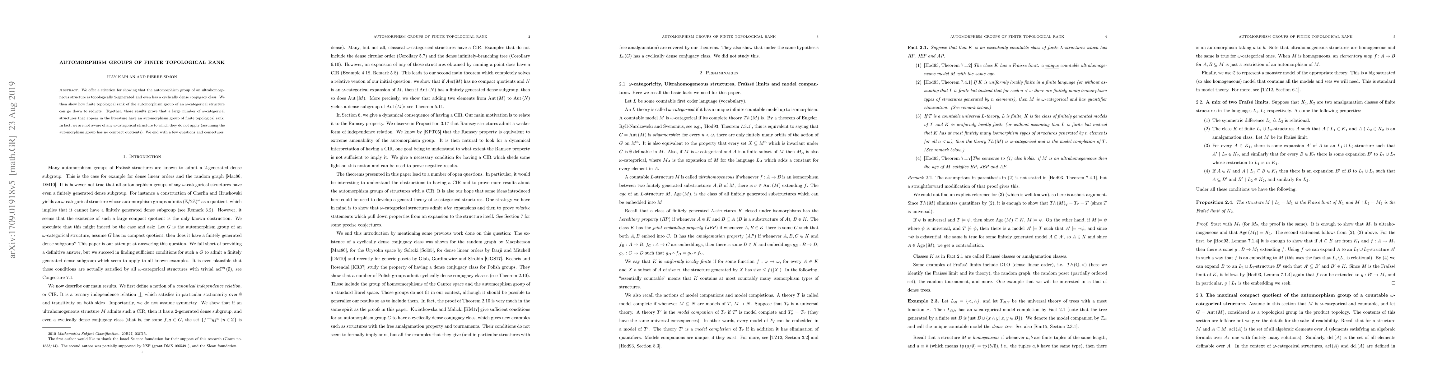 We offer a criterion for showing that the automorphism group of an ultrahomogeneous structure is topologically 2-generated and even has a cyclically dense conjugacy class. We then show how finite topological rank of the automorphism group of an $\omega$-categorical structure can go down to reducts. Together, those results prove that a large number of $\omega$-categorical structures that appear in the literature have an automorphism group of finite topological rank. In fact, we are not aware of any $\omega$-categorical structure to which they do not apply (assuming the automorphism group has no compact quotients). We end with a few questions and conjectures.