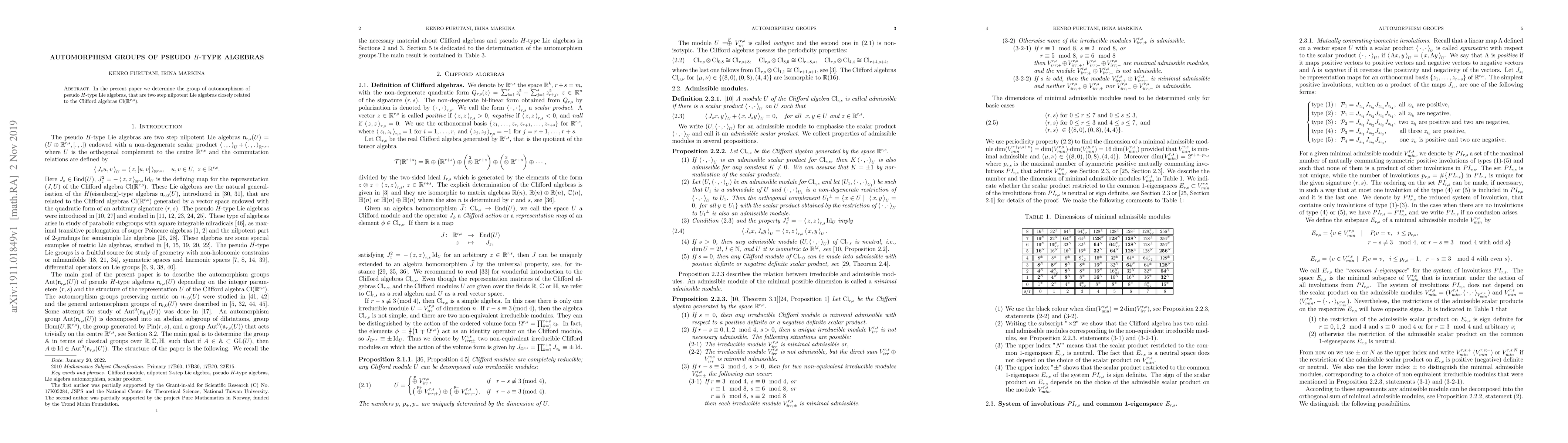 Summary: This paper identifies the automorphism group of pseudo $H$-type Lie algebras, which are two-step nilpotent Lie algebras linked to Clifford algebras $\Cl(\mathbb R^{r,s})$. The findings provide insights into the structural properties of these algebras.