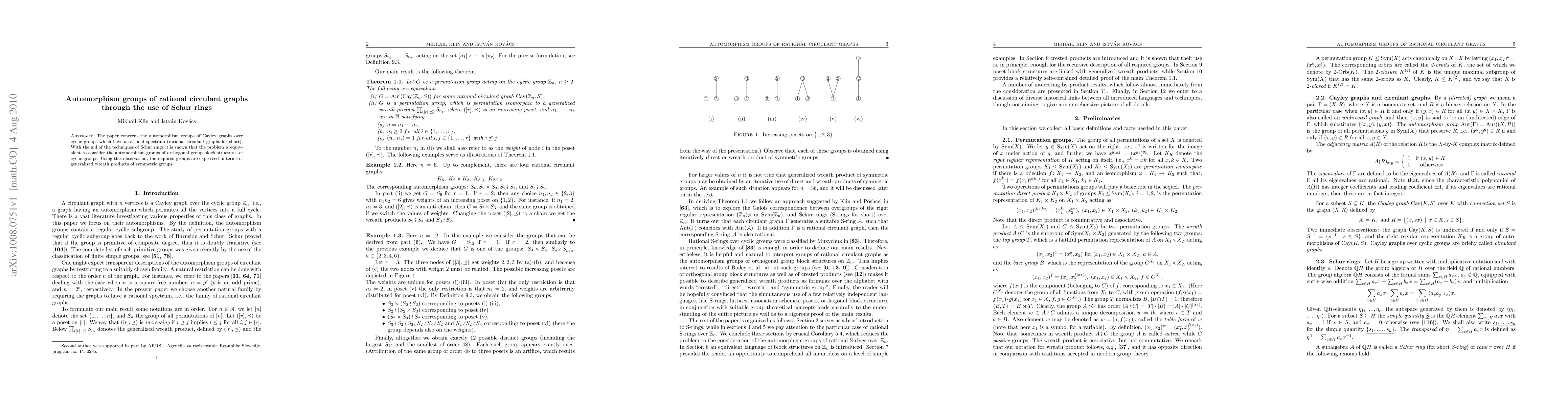 Summary: The paper investigates the automorphism groups of rational circulant graphs by employing Schur rings, demonstrating their equivalence to the study of orthogonal group block structures of cyclic groups, and expressing the required groups via generalized wreath products of symmetric groups.