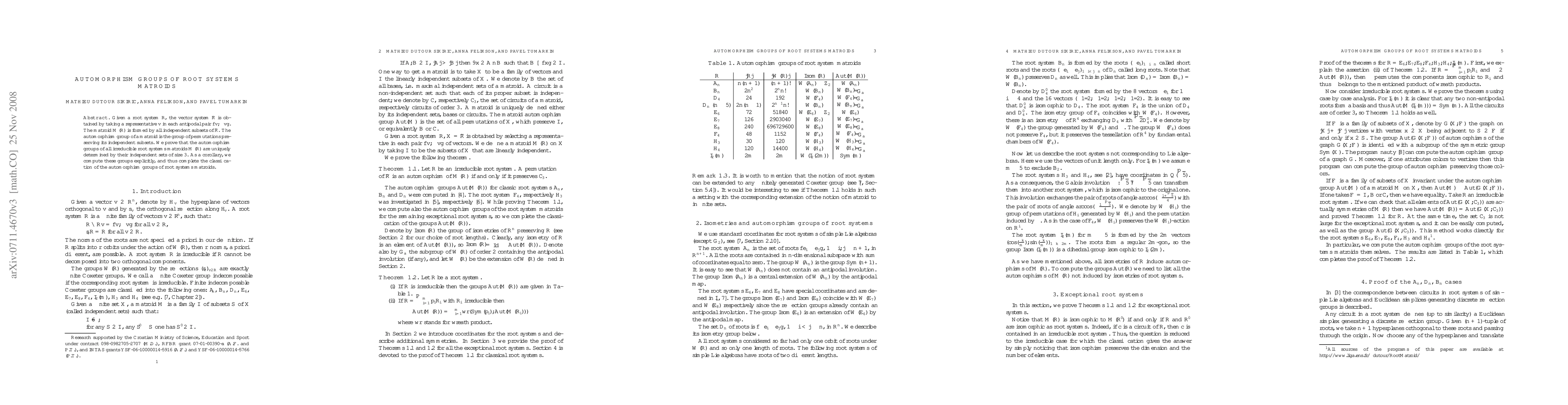 This paper proves that the automorphism groups of irreducible root systems matroids are uniquely determined by their independent sets of size 3, leading to an explicit computation and complete classification of these automorphism groups.