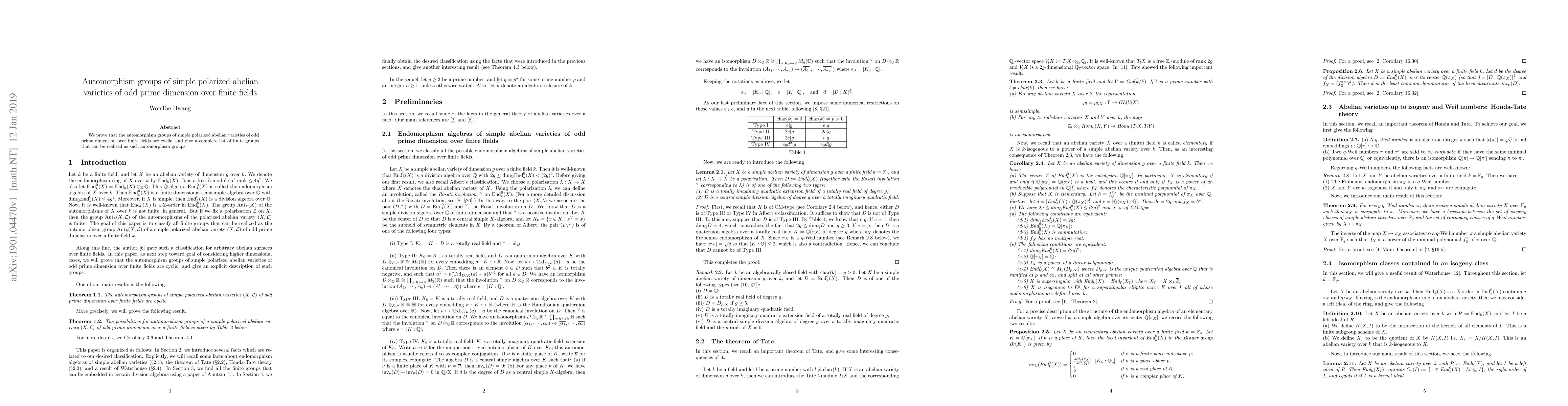 Summary: The paper demonstrates that the automorphism groups of simple polarized abelian varieties of odd prime dimension over finite fields are cyclic and provides a comprehensive enumeration of the finite groups that can serve as such automorphism groups.