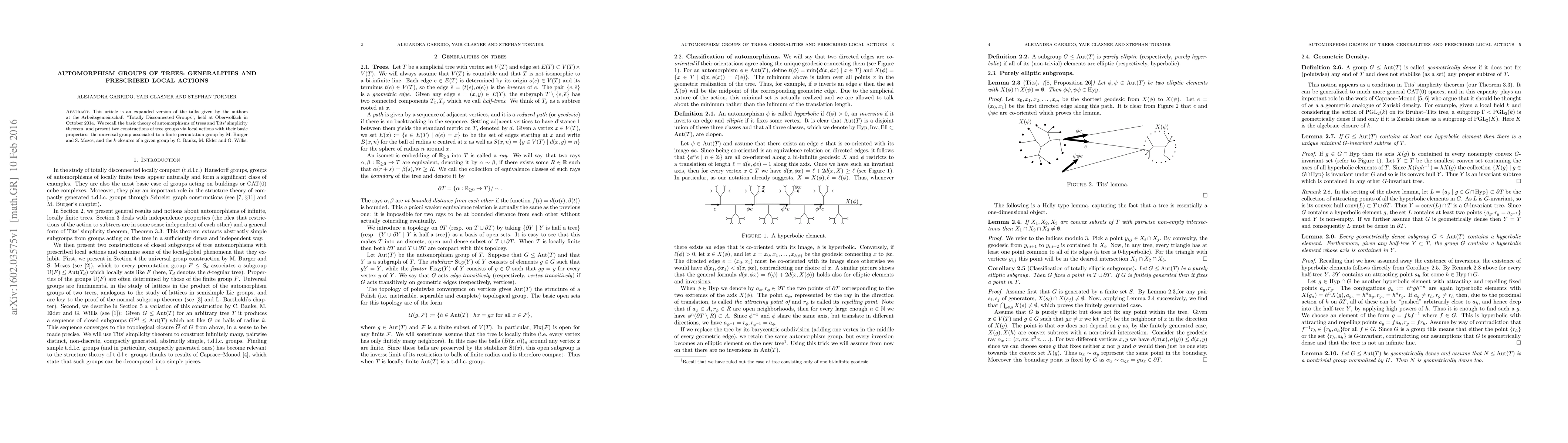 This paper explores the automorphism groups of trees, including two constructions that generalize previous work on tree groups via local actions. It presents key findings on group properties and implications for understanding these groups.