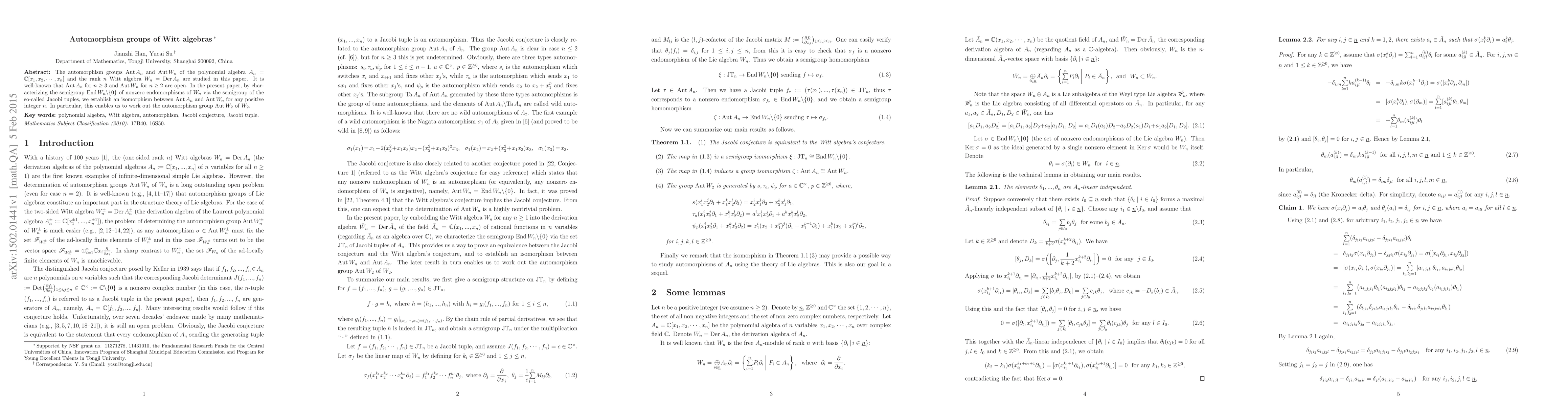The automorphism groups ${\rm Aut\,}A_n$ and ${\rm Aut\,}W_n$ of the polynomial algebra $A_n=C[x_1,x_2,\cdots, x_n]$ and the rank $n$ Witt algebra $W_n={\rm Der\,}A_n$ are studied in this paper. It is well-known that ${\rm Aut\,}A_n$ for $n\ge3$ and ${\rm Aut\,}W_n$ for $n\ge2$ are open. In the present paper, by characterizing the semigroup ${\rm End\,}W_n\setminus\{0\}$ of nonzero endomorphisms of $W_n$ via the semigroup of the so-called Jacobi tuples, we establish an isomorphism between ${\rm Aut}\,A_n$ and ${\rm Aut\,}W_n$ for any positive integer $n$. In particular, this enables us to work out the automorphism group ${\rm Aut\,}W_2$ of $W_2$.