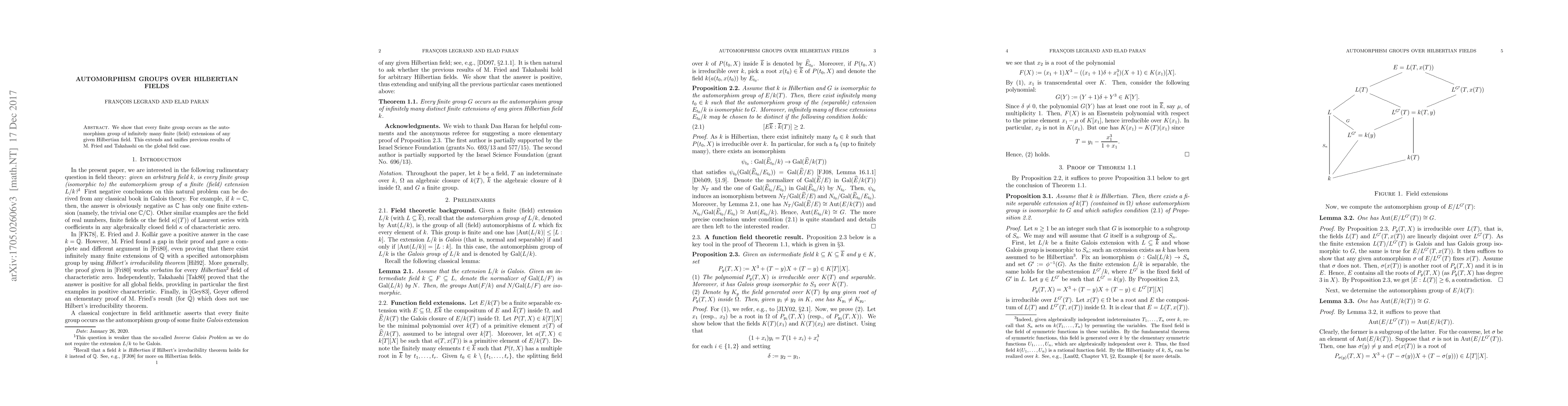 Summary: This paper demonstrates that any finite group can serve as the automorphism group for an infinite number of finite extensions over any Hilbertian field, thereby extending and unifying prior findings by Fried and Takahashi regarding global fields.