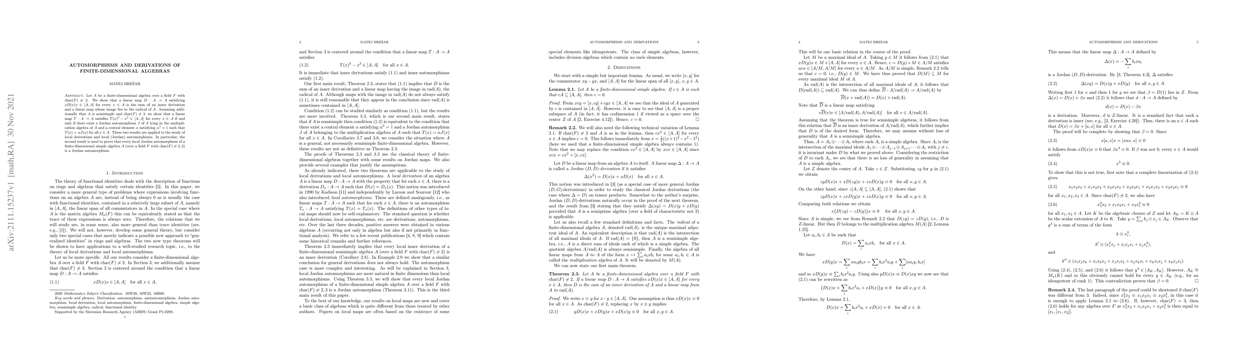 This paper investigates the structure of linear maps on finite-dimensional algebras, proving that a specific type of derivation is the sum of an inner derivation and a map into the algebra's radical. It further establishes that certain linear transformations satisfying cubic conditions are Jordan automorphisms, and applies these results to study local derivations and automorphisms, concluding that local Jordan automorphisms in simple algebras are indeed Jordan automorphisms.