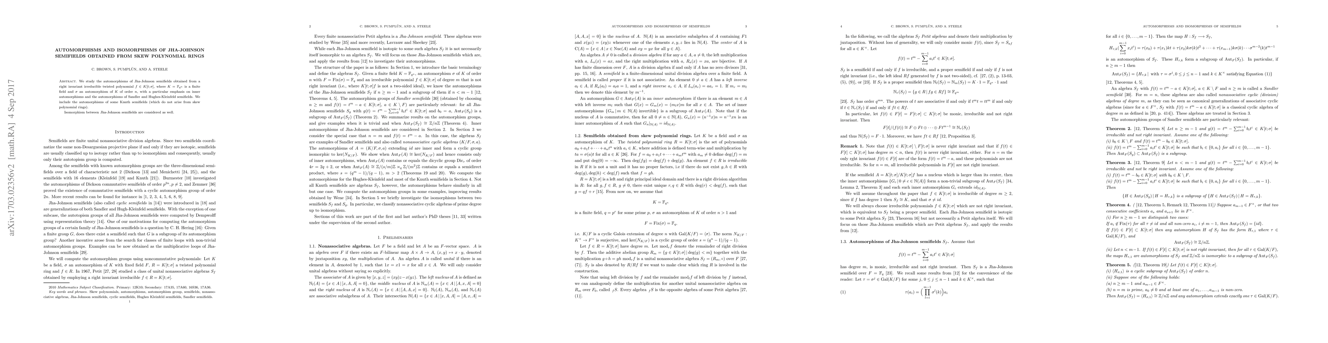 This paper investigates the automorphisms of Jha-Johnson semifields derived from skew polynomial rings, focusing on inner automorphisms and those of Sandler and Hughes-Kleinfeld semifields, while also considering isomorphisms between these semifields. Additionally, it examines the automorphisms of Knuth semifields, which do not originate from skew polynomial rings.