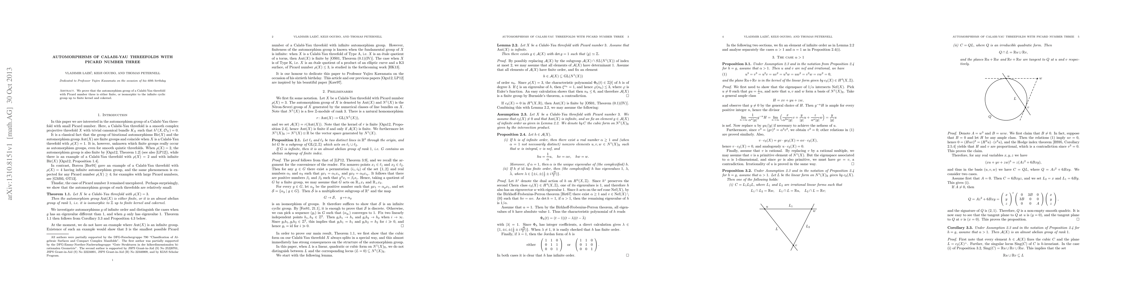 Summary: This paper demonstrates that the automorphism group of a Calabi-Yau threefold with a Picard number of three is either finite or isomorphic to the infinite cyclic group, with potential finite kernel and cokernel.