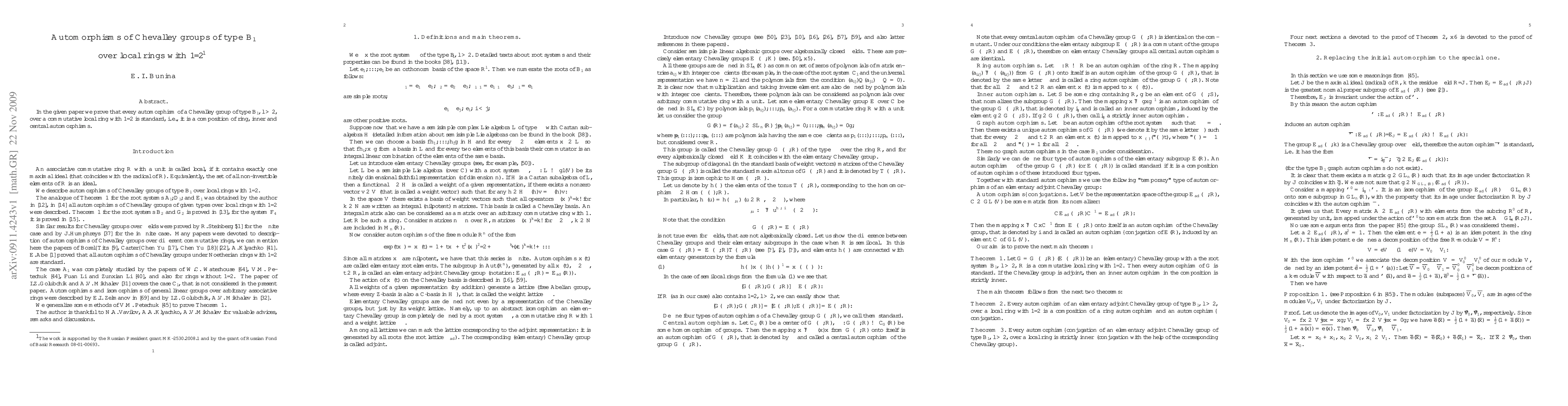 Summary: The paper demonstrates that any automorphism of a Chevalley group of type $B_l$ ($l\geqslant 2$) over a commutative local ring containing 1/2 is standard, consisting of a combination of ring, inner, and central automorphisms.