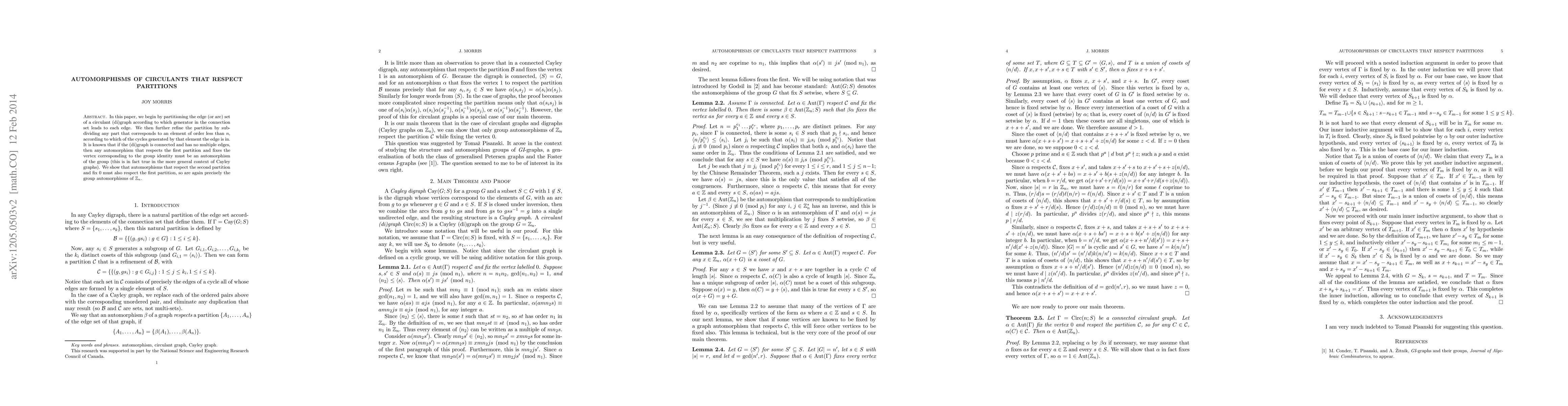 Researchers prove that certain automorphisms of circulants respecting partitions must fix the vertex corresponding to the group identity, leading to an isomorphism with the cyclic group π_n.