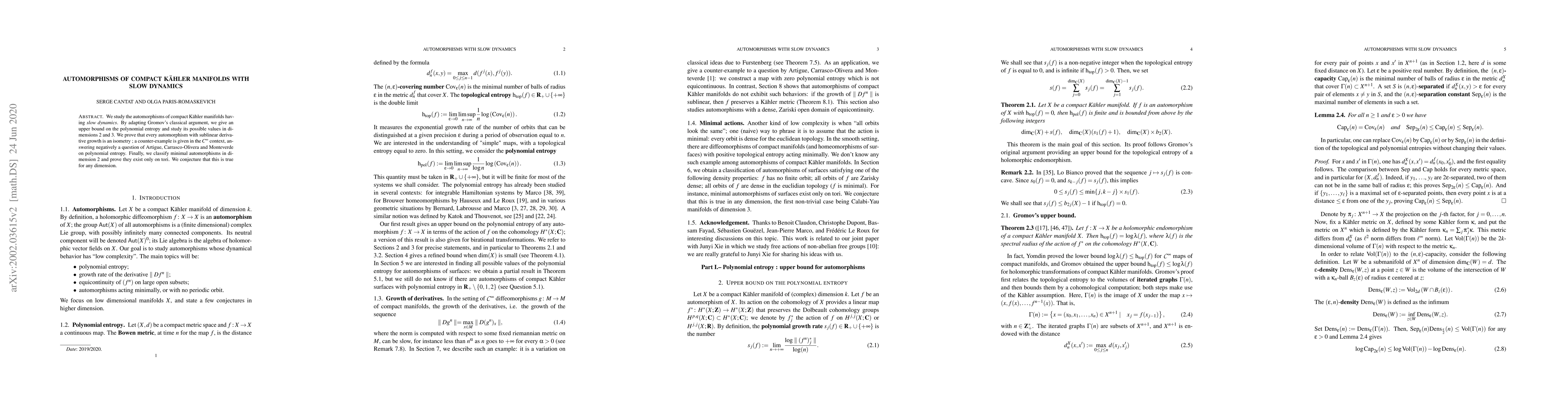 This paper investigates automorphisms of compact Kähler manifolds with slow dynamics, providing an upper bound on polynomial entropy and showing that automorphisms with sublinear derivative growth are isometries. It also disproves a conjecture regarding polynomial entropy in the smooth context and classifies minimal automorphisms in dimension 2, proving they exist only on tori.
