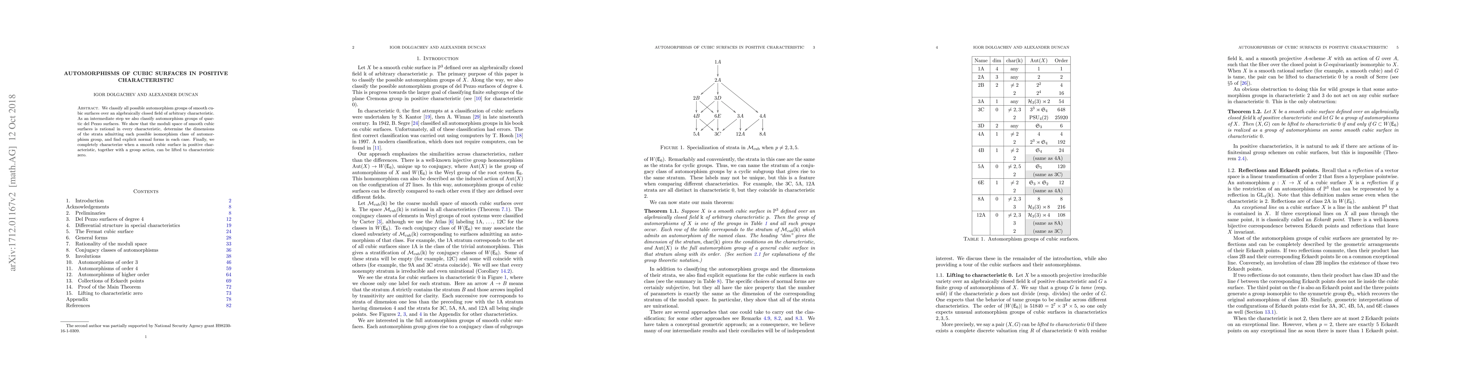 This paper classifies the automorphism groups of smooth cubic surfaces over algebraically closed fields of any characteristic, also classifying quartic del Pezzo surfaces' automorphism groups. It determines the rationality of the moduli space for these surfaces and provides explicit normal forms for each automorphism group type, alongside conditions for lifting such structures from positive to zero characteristic.