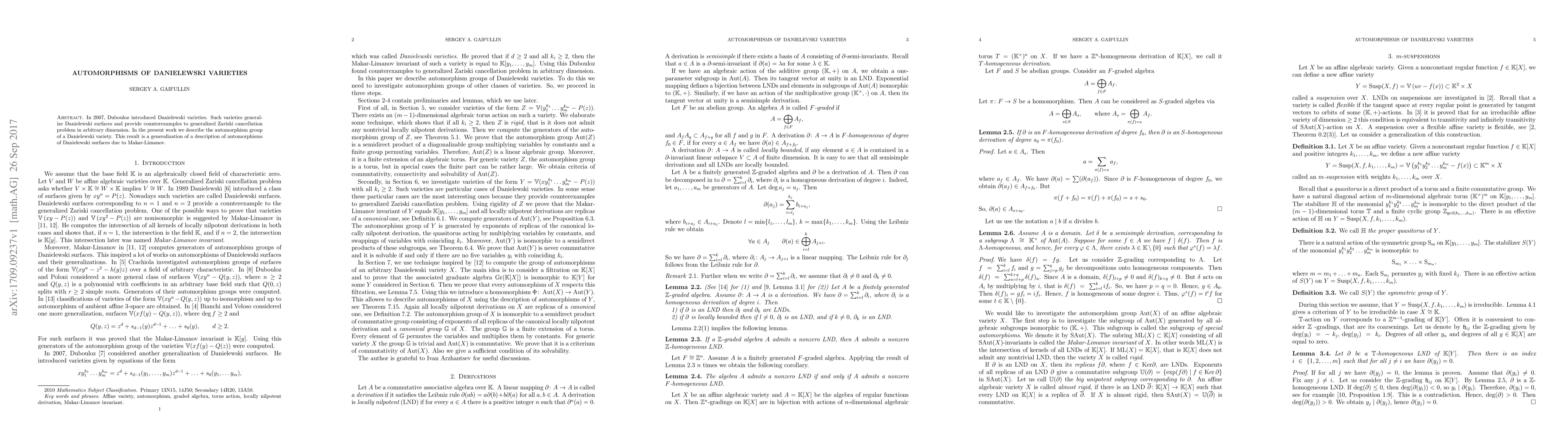 The paper investigates the automorphism group of Danielewski varieties, which generalize Danielewski surfaces and serve as counterexamples to the generalized Zariski cancellation problem. The study provides a detailed description of these automorphisms, extending the prior work by Makar-Limanov on Danielewski surfaces.