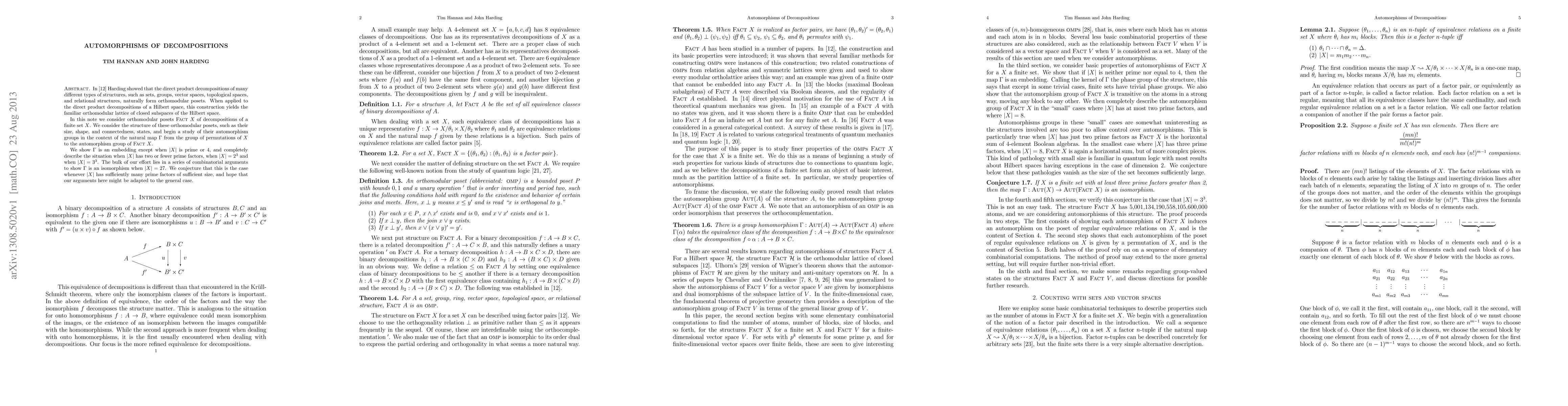 This paper explores the automorphisms of orthomodular posets formed from direct product decompositions of finite sets, focusing on the embedding of the permutation group into the automorphism group of these posets. The authors provide detailed results for specific set sizes and conjecture that their findings generalize to sets with many large prime factors.