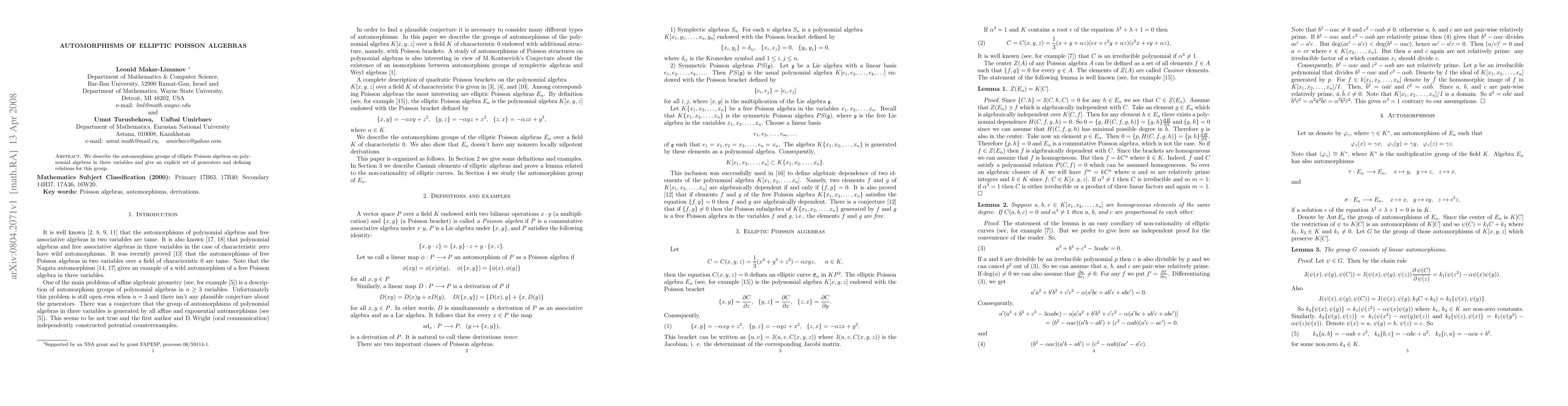 We describe the automorphism groups of elliptic Poisson algebras on polynomial algebras in three variables and give an explicit set of generators and defining relations for this group.