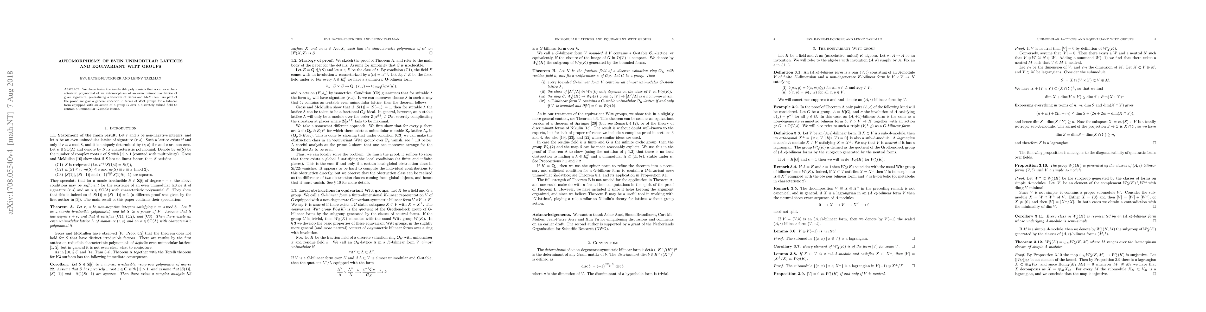 We characterize the irreducible polynomials that occur as a characteristic polynomial of an automorphism of an even unimodular lattice of given signature, generalizing a theorem of Gross and McMullen. As part of the proof, we give a general criterion in terms of Witt groups for a bilinear form equipped with an action of a group G over a discretely valued field to contain a unimodular G-stable lattice.