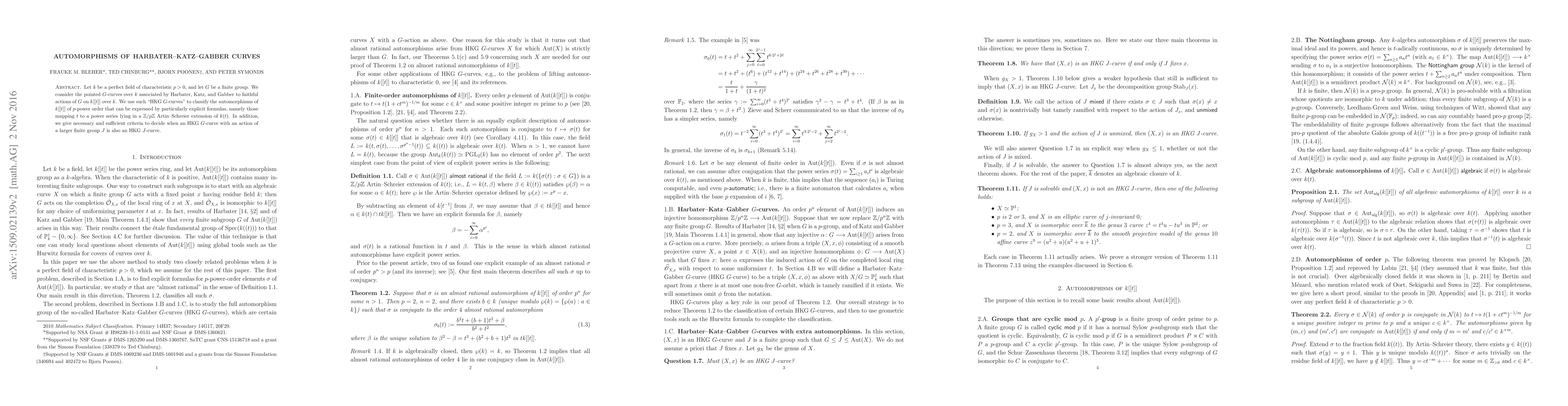 This paper classifies automorphisms of k[[t]] of p-power order using Harbater-Katz-Gabber (HKG) curves, focusing on those mapping t to series in Z/pZ Artin-Schreier extensions. It also provides criteria for determining when an HKG G-curve with a larger group action remains an HKG curve.