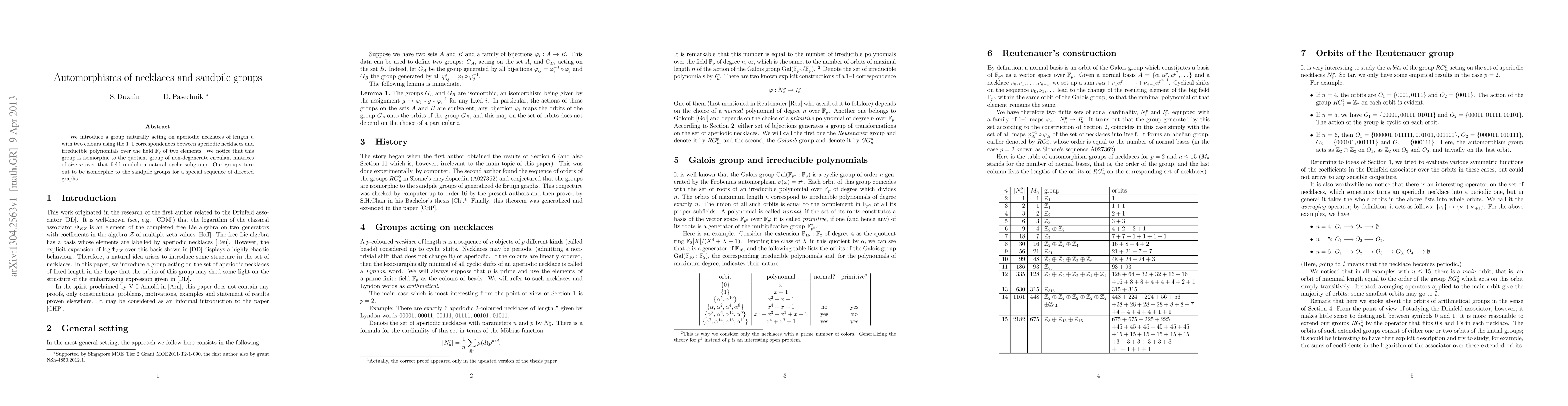 Researchers introduce a group acting on aperiodic necklaces, linking it to irreducible polynomials and sandpile groups, providing new insights into geometric combinatorics.