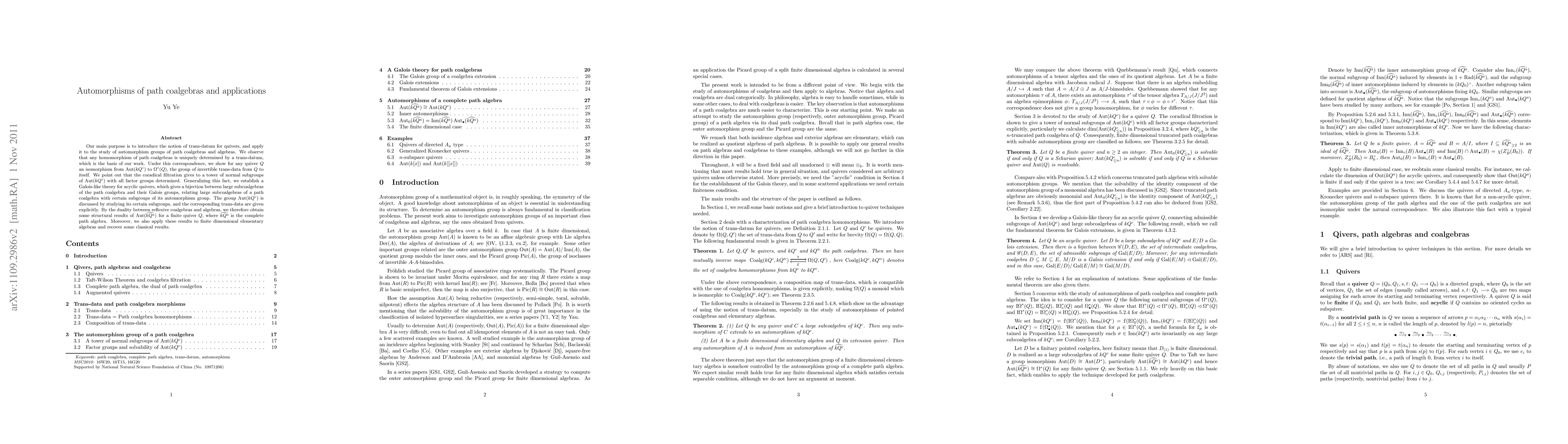 This paper introduces the concept of trans-datum for quivers to study automorphism groups of path coalgebras and algebras, establishing an isomorphism between $\aut(kQ^c)$ and $\Omega^*(Q)$. It develops a Galois-like theory for acyclic quivers, connecting large subcoalgebras to their Galois groups via trans-data and discusses structural results for automorphisms of complete path algebras.