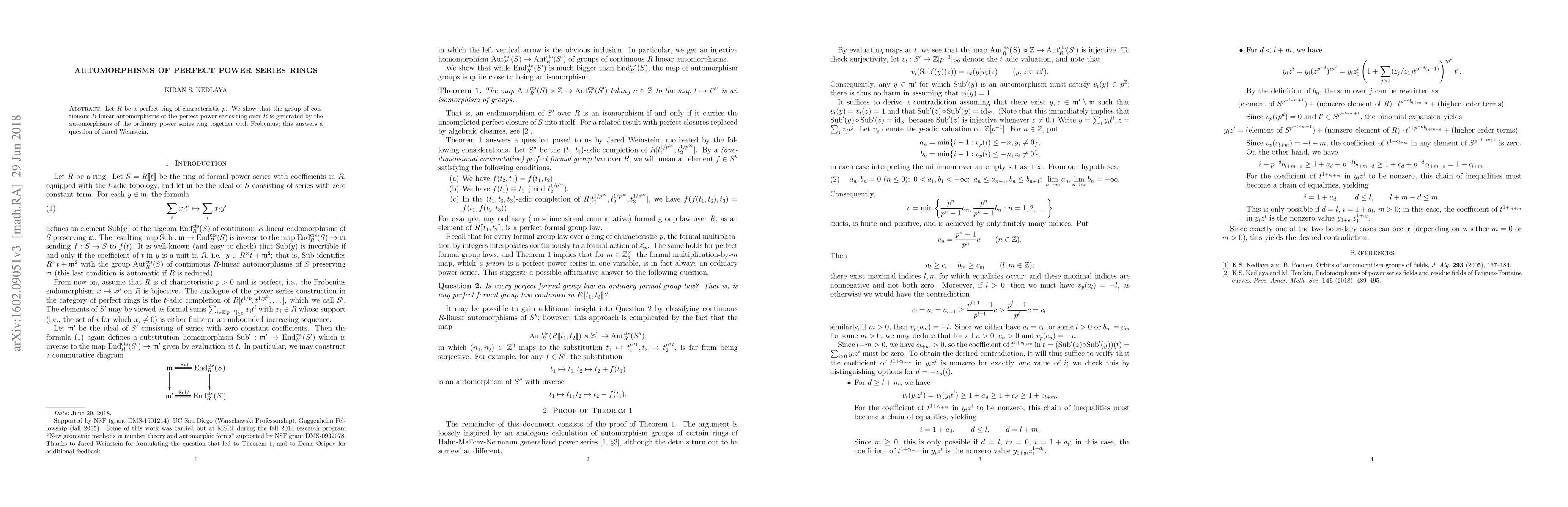 Summary: The paper demonstrates that the continuous R-linear automorphisms of a perfect power series ring over a perfect ring R of characteristic p are generated by automorphisms of the ordinary power series ring and the Frobenius automorphism, resolving a question posed by Jared Weinstein.