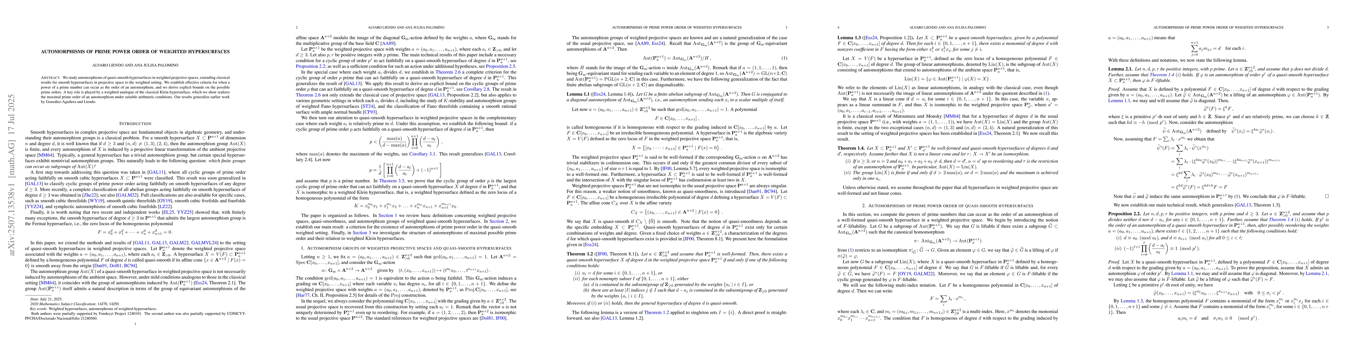 We study automorphisms of quasi-smooth hypersurfaces in weighted projective spaces, extending classical results for smooth hypersurfaces in projective space to the weighted setting. We establish effective criteria for when a power of a prime number can occur as the order of an automorphism, and we derive explicit bounds on the possible prime orders. A key role is played by a weighted analogue of the classical Klein hypersurface, which we show realizes the maximal prime order of an automorphism under suitable arithmetic conditions. Our results generalize earlier work by Gonz\'alez-Aguilera and Liendo.
