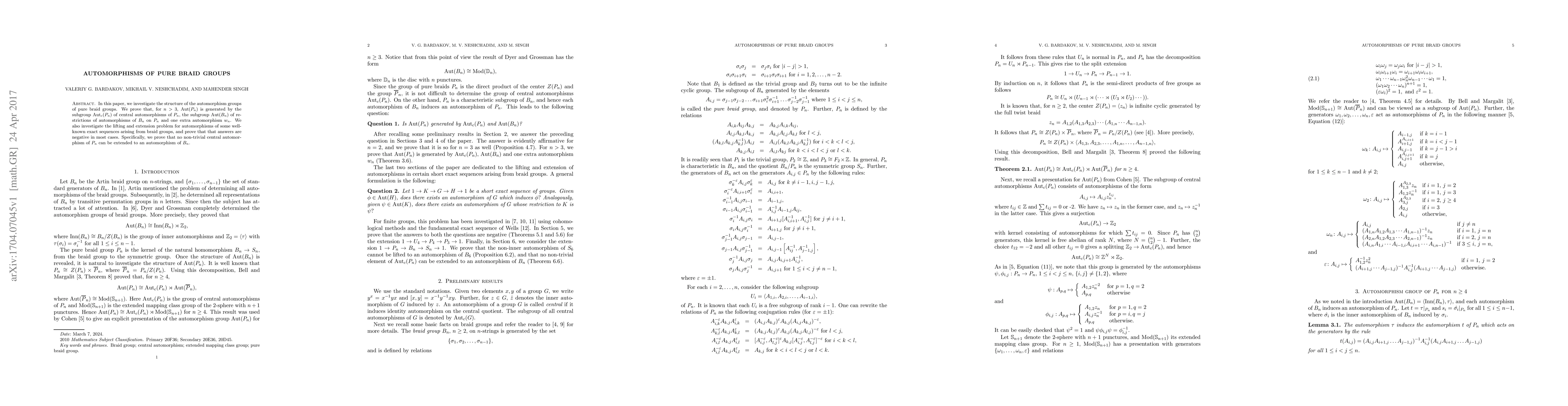 This paper explores the structure of automorphism groups of pure braid groups, proving that for $n>3$, $\Aut(P_n)$ is generated by central automorphisms, restrictions from braid group automorphisms, and an additional automorphism $w_n$. It also finds that most non-trivial central automorphisms of $P_n$ cannot extend to automorphisms of $B_n$.