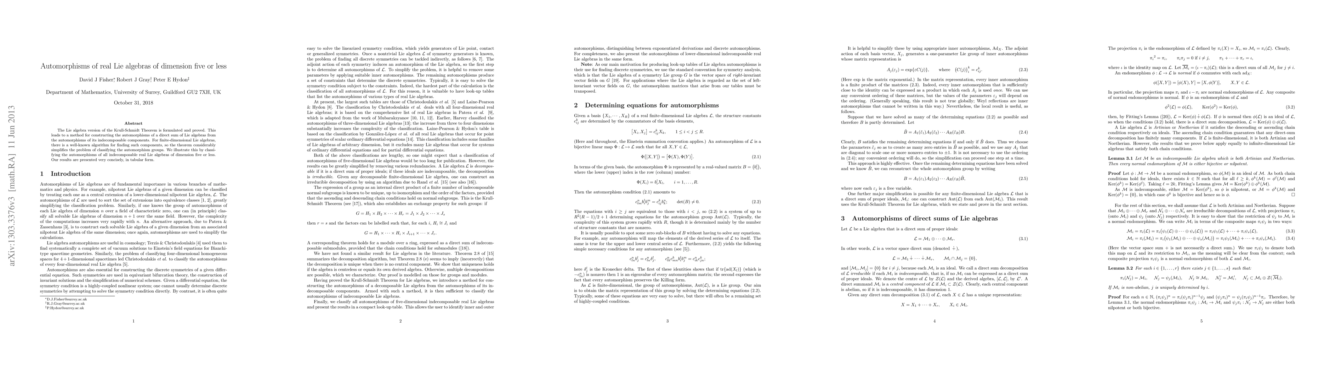 Researchers have developed a method to classify the automorphisms of direct sums of Lie algebras by breaking down the problem into smaller components using the Krull-Schmidt Theorem, resulting in a simplified approach for finite-dimensional Lie algebras.