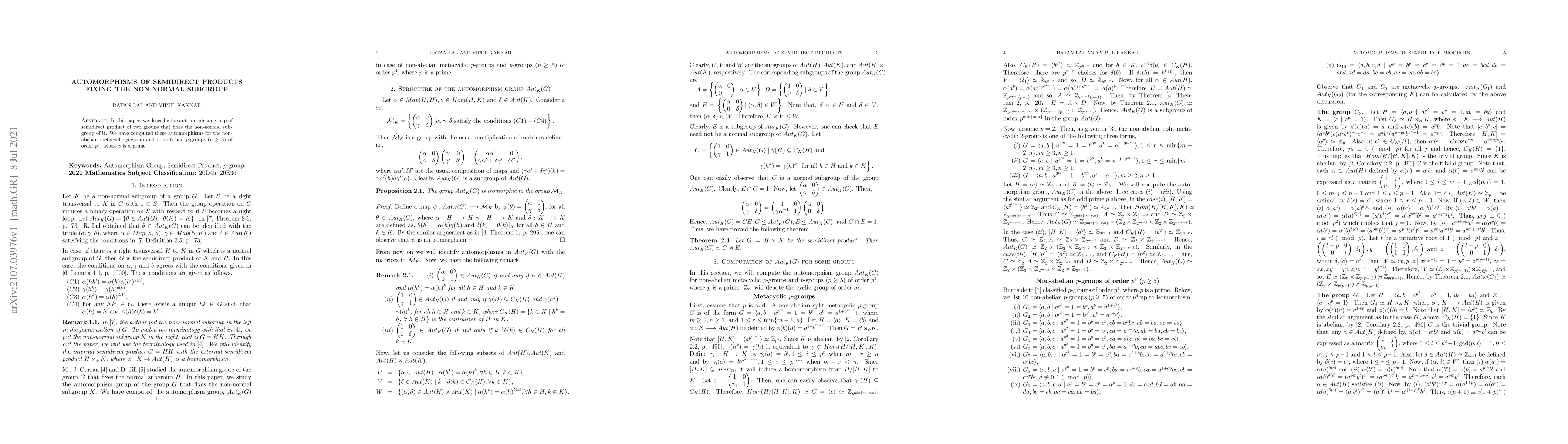 This paper investigates the automorphism group of semidirect products that leave the non-normal subgroup unchanged, specifically computing these automorphisms for non-abelian metacyclic $p$-groups and non-abelian $p$-groups of order $p^{4}$ for primes $p \ge 5$.