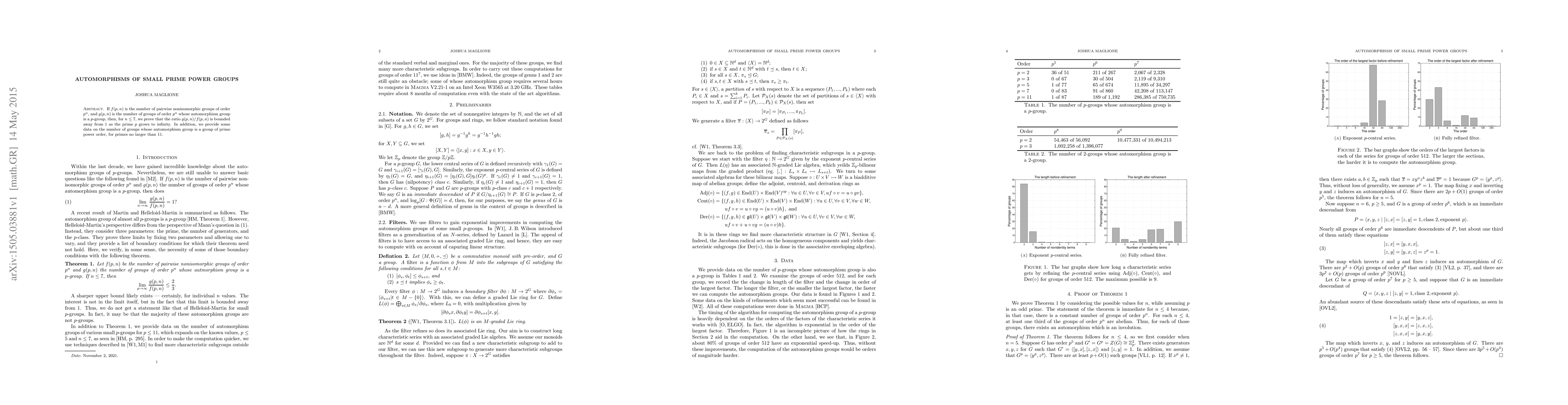 Researchers prove that for small prime power groups, the ratio of groups with a p-group automorphism group to total groups is bounded away from 1 as prime p grows, providing insight into group structure.