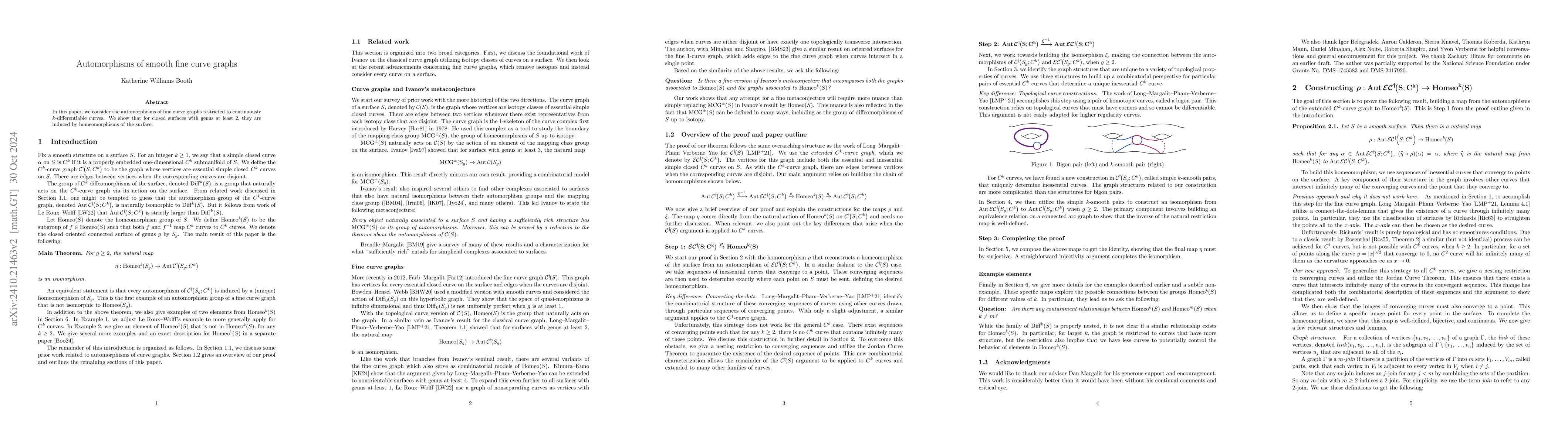 Summary: This study investigates the automorphisms of fine curve graphs for continuously $k$-differentiable curves on closed surfaces of genus at least 2, demonstrating that these automorphisms arise from surface homeomorphisms.