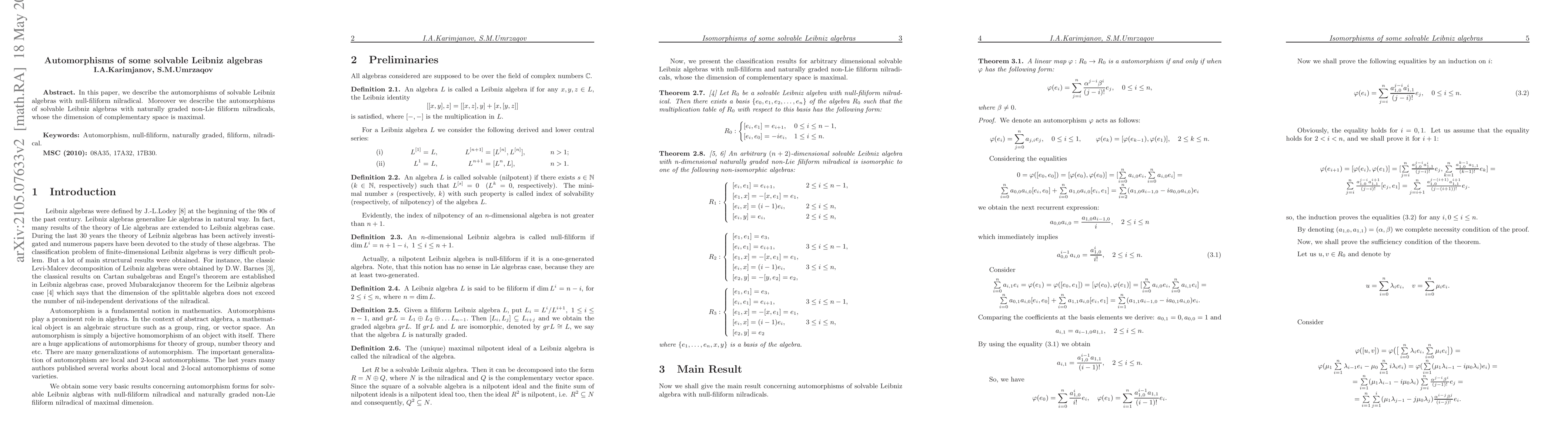 This paper characterizes the automorphisms of solvable Leibniz algebras with specific nilradical structures, including null-filiform and naturally graded non-Lie filiform types, focusing on those with maximal complementary space dimensions.