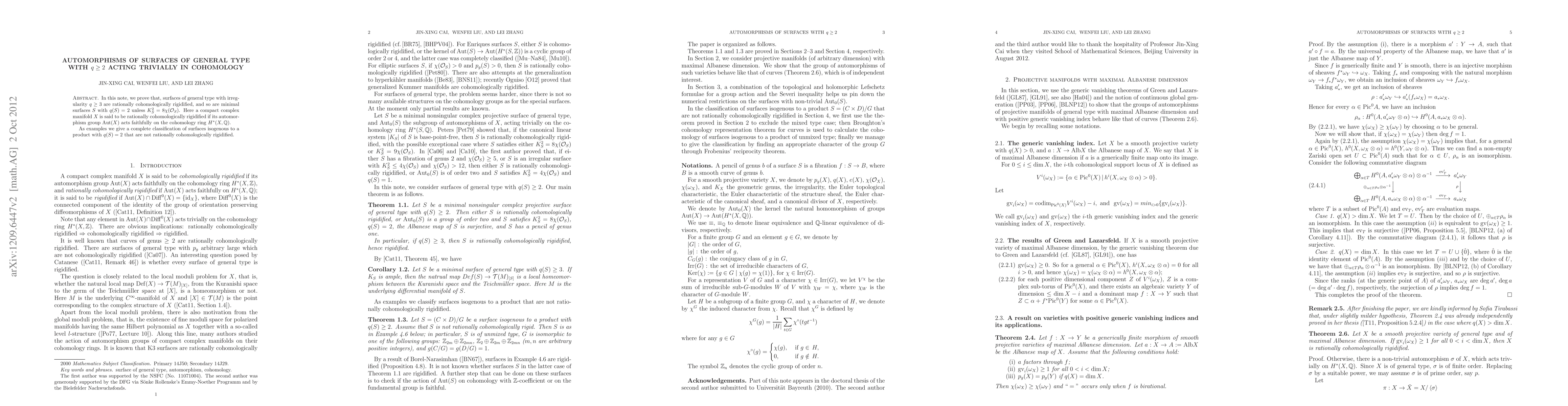 This paper proves that surfaces of general type with irregularity \( q \geq 2 \) are rationally cohomologically rigidified, meaning their automorphism group acts trivially in cohomology, except for minimal surfaces with \( q=2 \) and \( K^2=8X \). It also classifies non-rigidified surfaces isogenous to a product with \( q=2 \), finding they are actually rigidified.