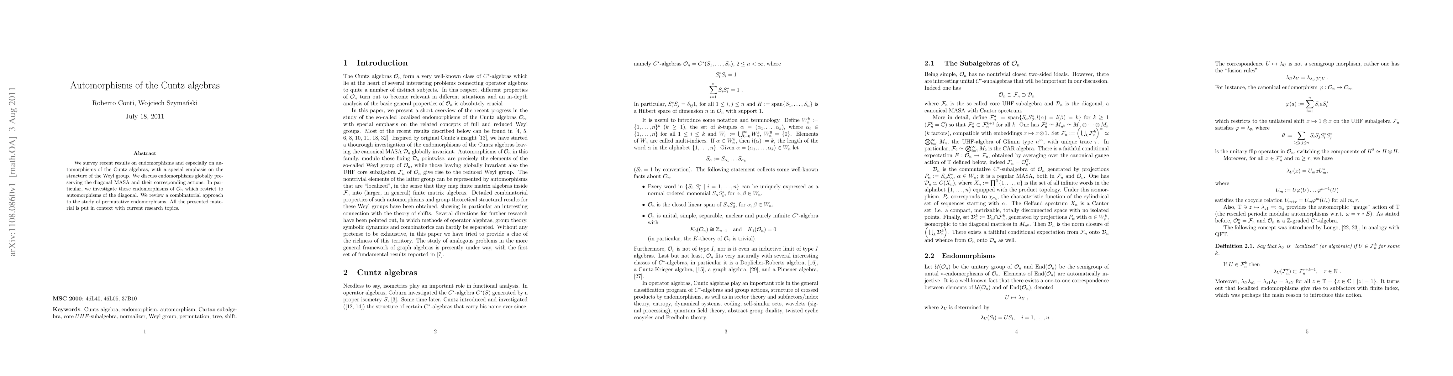 The development of new techniques for analyzing the structure of localized automorphisms, which have been applied to the study of the Cuntz algebra.