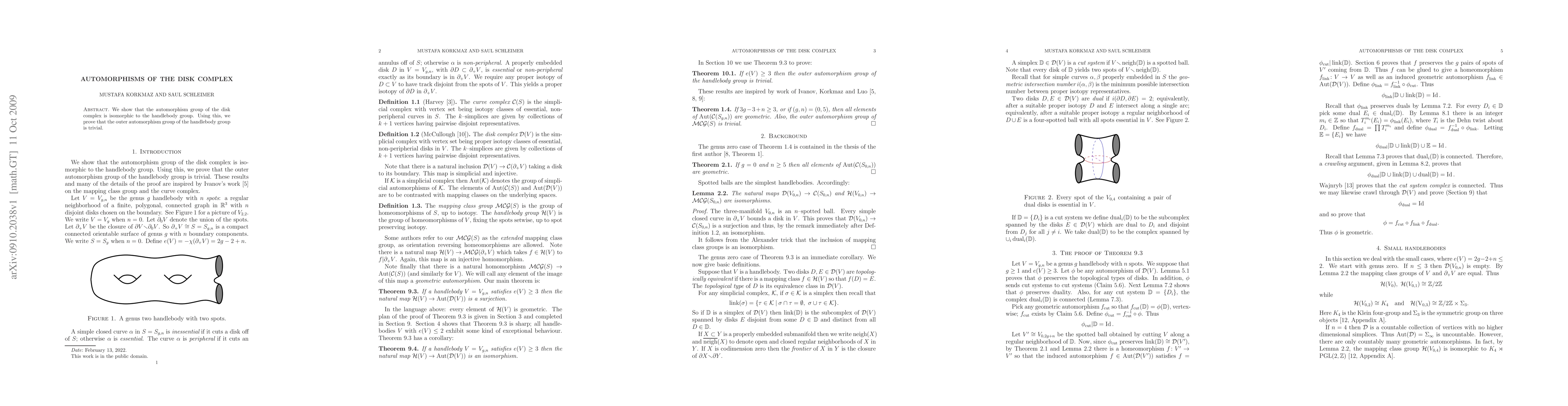 We show that the automorphism group of the disk complex is isomorphic to the handlebody group. Using this, we prove that the outer automorphism group of the handlebody group is trivial.