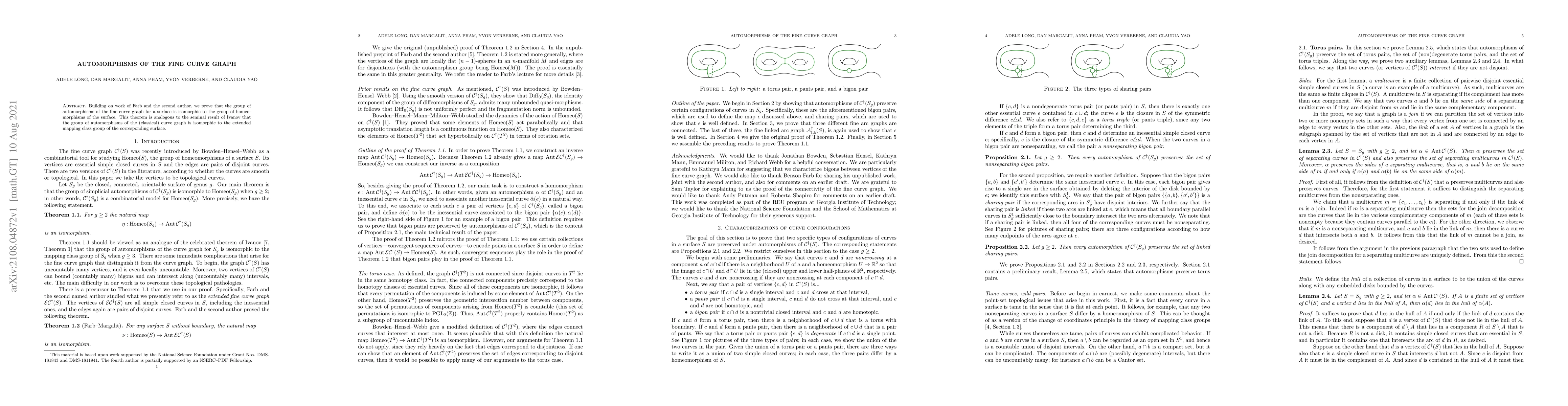This paper proves that the automorphisms of the fine curve graph for a surface are isomorphic to the homeomorphisms of the surface, analogous to Ivanov's result linking the classical curve graph's automorphisms to the extended mapping class group.