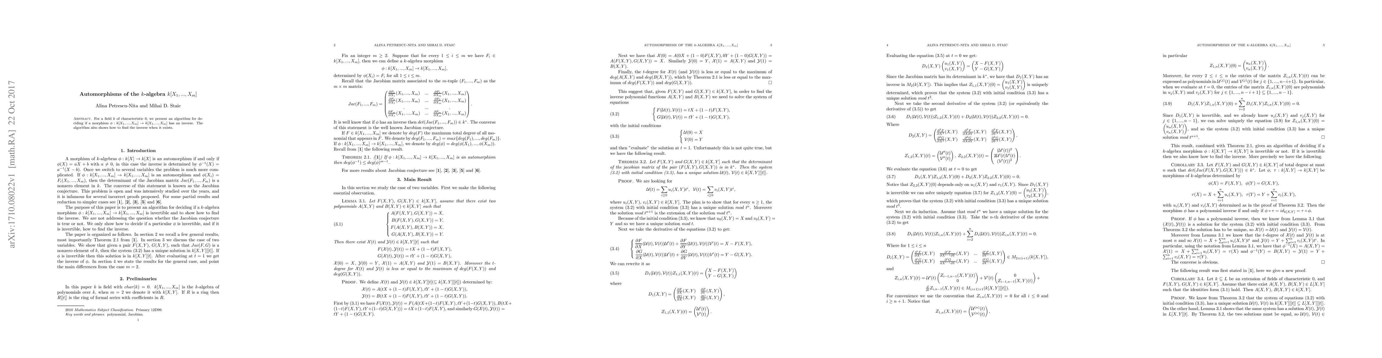The paper presents an algorithm to determine if a morphism between polynomial algebras has an inverse, enabling the calculation of that inverse for fields of characteristic 0.