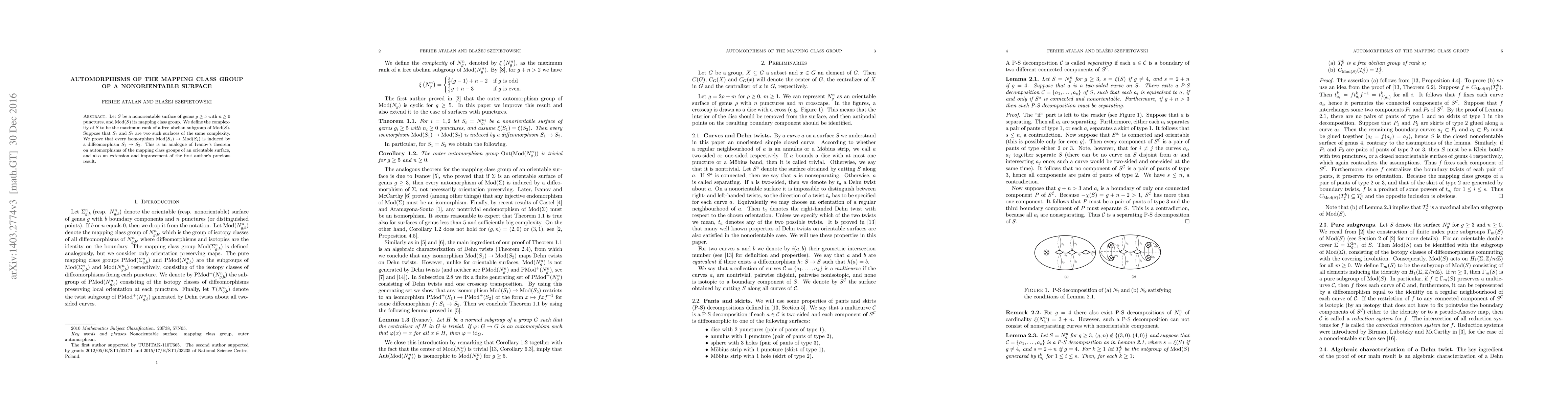 The paper introduces a method to prove that isomorphisms between mapping class groups of nonorientable surfaces of the same complexity are induced by diffeomorphisms, extending previous results for orientable surfaces.