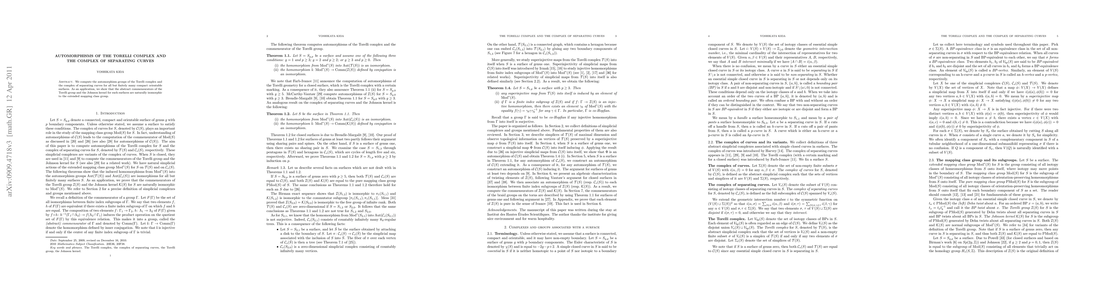 Summary: This paper determines the automorphism groups of the Torelli complex and the complex of separating curves for most compact orientable surfaces. It also demonstrates that the abstract commensurators of the Torelli group and Johnson kernel are isomorphic to the extended mapping class group.