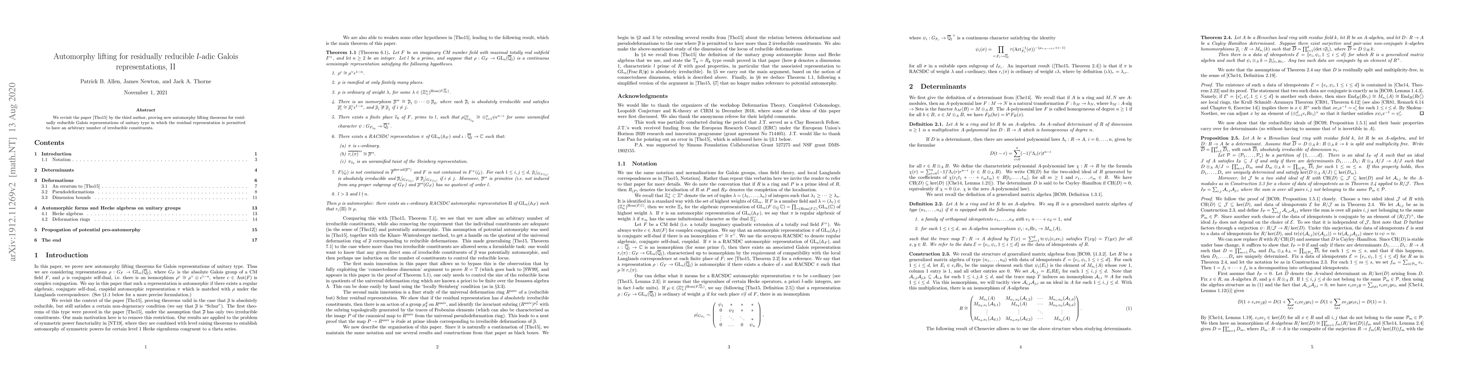 This paper establishes novel automorphy lifting theorems for residually reducible $l$-adic Galois representations of unitary type, allowing the residual representation to consist of any number of irreducible components. These results extend previous lifting theorems to more complex structures.