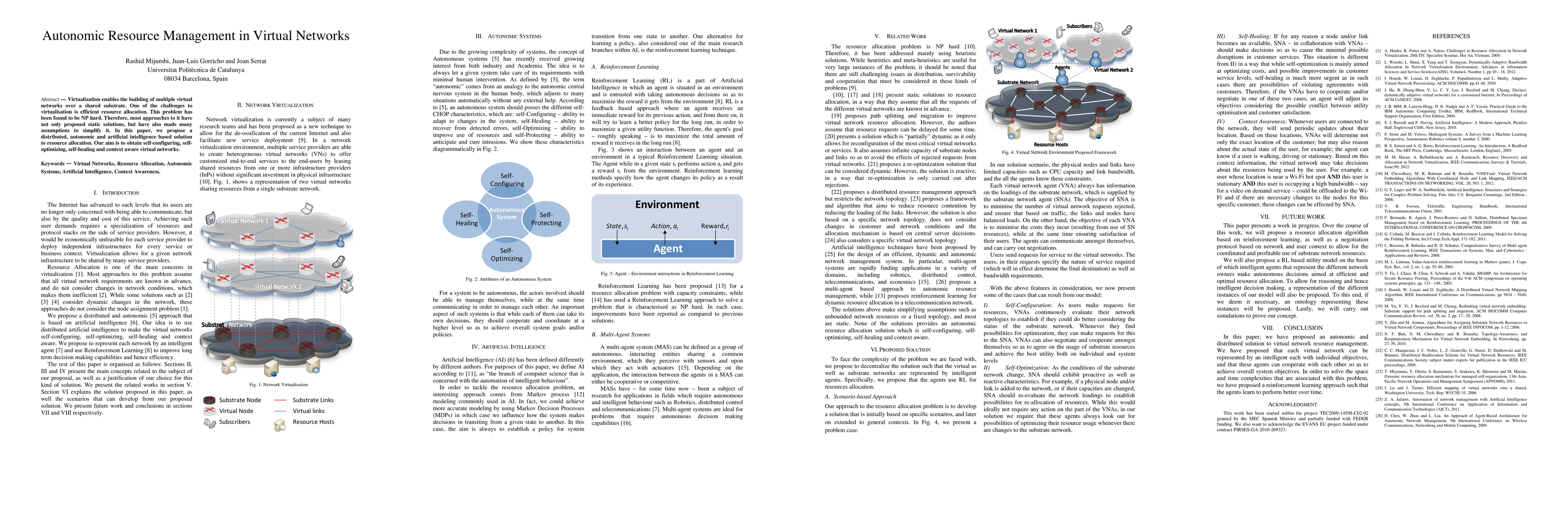 This paper proposes a distributed, autonomic solution leveraging artificial intelligence for efficient resource allocation in virtual networks, aiming for self-configuring, self-optimizing, self-healing, and context-aware virtual network management.