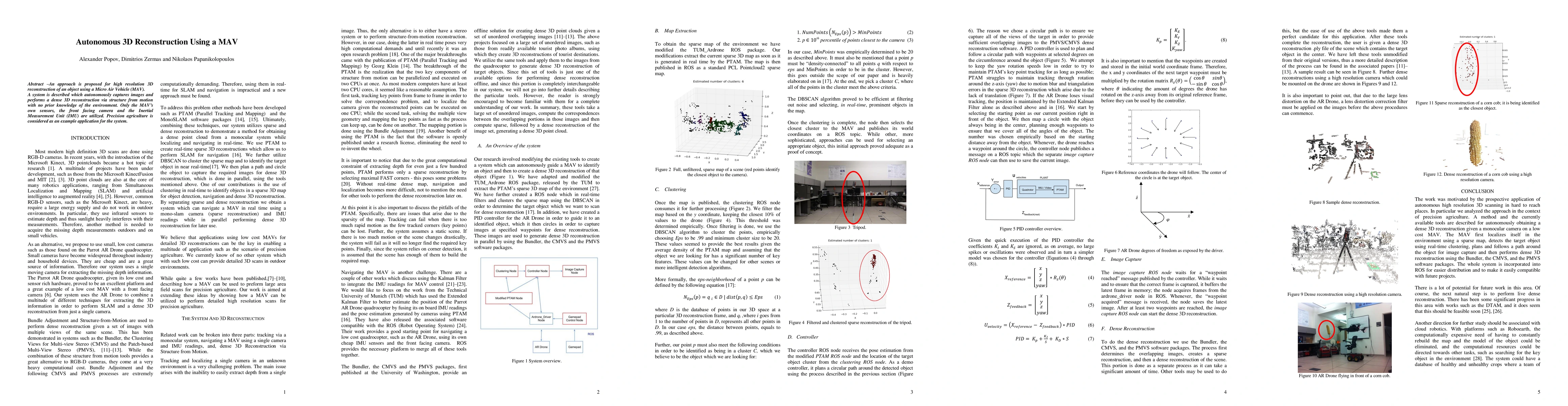 A system uses a Micro Air Vehicle to capture images and perform dense 3D reconstruction without prior knowledge of the environment, with potential applications in precision agriculture.