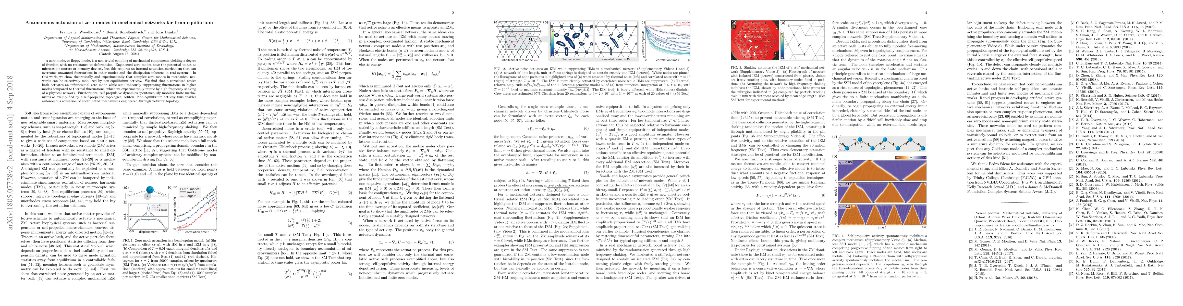 A zero mode, or floppy mode, is a non-trivial coupling of mechanical components yielding a degree of freedom with no resistance to deformation. Engineered zero modes have the potential to act as microscopic motors or memory devices, but this requires an internal actuation mechanism that can overcome unwanted fluctuations in other modes and the dissipation inherent in real systems. In this work, we show theoretically and experimentally that complex zero modes in mechanical networks can be selectively mobilized by non-equilibrium activity. We find that a correlated active bath actuates an infinitesimal zero mode while simultaneously suppressing fluctuations in higher modes compared to thermal fluctuations, which we experimentally mimic by high frequency shaking of a physical network. Furthermore, self-propulsive dynamics spontaneously mobilise finite mechanisms as exemplified by a self-propelled topological soliton. Non-equilibrium activity thus enables autonomous actuation of coordinated mechanisms engineered through network topology.