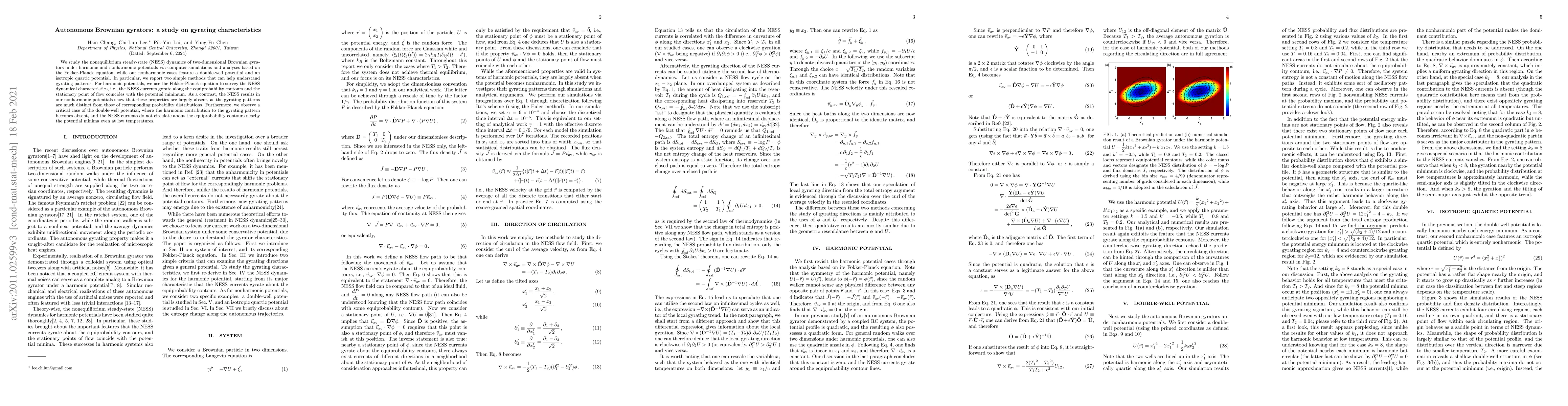 We study the nonequilibrium steady-state (NESS) dynamics of two-dimensional Brownian gyrators under harmonic and nonharmonic potentials via computer simulations and analyses based on the Fokker-Planck equation, while our nonharmonic cases feature a double-well potential and an isotropic quartic potential. In particular, we report two simple methods that can help understand gyrating patterns. For harmonic potentials, we use the Fokker-Planck equation to survey the NESS dynamical characteristics, i.e., the NESS currents gyrate along the equiprobability contours and the stationary point of flow coincides with the potential minimum. As a contrast, the NESS results in our nonharmonic potentials show that these properties are largely absent, as the gyrating patterns are much distinct from those of corresponding probability distributions. Furthermore, we observe a critical case of the double-well potential, where the harmonic contribution to the gyrating pattern becomes absent, and the NESS currents do not circulate about the equiprobability contours nearby the potential minima even at low temperatures.