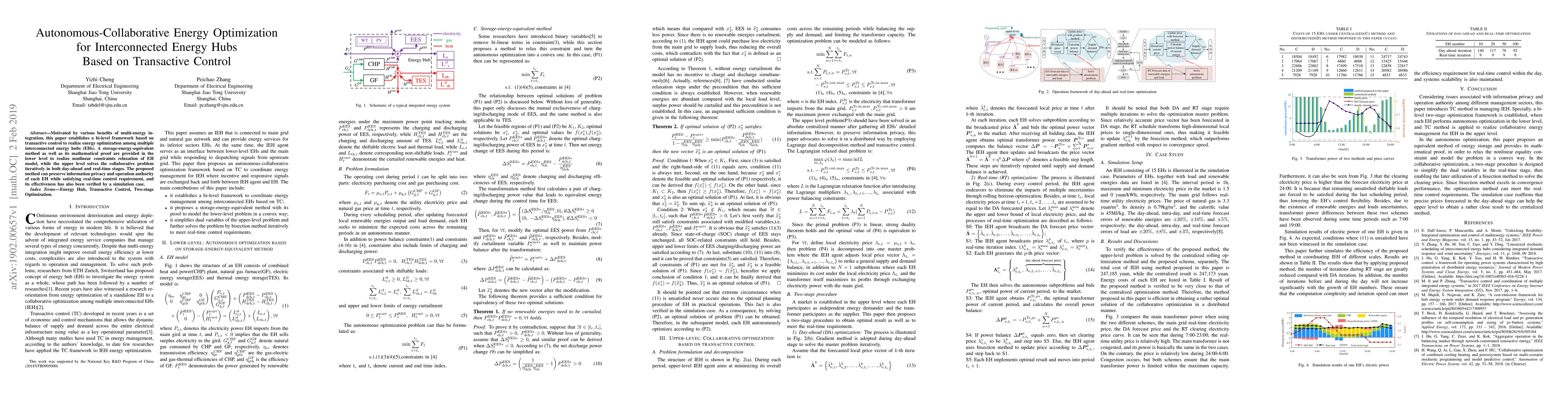 This paper proposes a bi-level framework for energy optimization among interconnected energy hubs using transactive control, incorporating a storage-energy-equivalent method to relax nonlinear constraints. The framework preserves information privacy and operational autonomy while ensuring real-time control, validated through simulation.