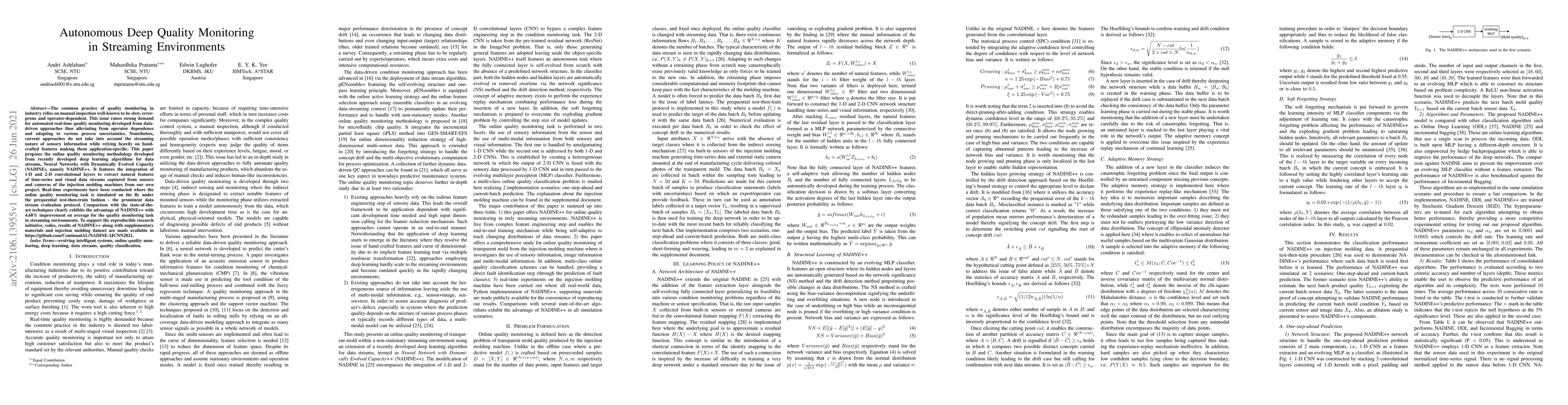 The common practice of quality monitoring in industry relies on manual inspection well-known to be slow, error-prone and operator-dependent. This issue raises strong demand for automated real-time quality monitoring developed from data-driven approaches thus alleviating from operator dependence and adapting to various process uncertainties. Nonetheless, current approaches do not take into account the streaming nature of sensory information while relying heavily on hand-crafted features making them application-specific. This paper proposes the online quality monitoring methodology developed from recently developed deep learning algorithms for data streams, Neural Networks with Dynamically Evolved Capacity (NADINE), namely NADINE++. It features the integration of 1-D and 2-D convolutional layers to extract natural features of time-series and visual data streams captured from sensors and cameras of the injection molding machines from our own project. Real-time experiments have been conducted where the online quality monitoring task is simulated on the fly under the prequential test-then-train fashion - the prominent data stream evaluation protocol. Comparison with the state-of-the-art techniques clearly exhibits the advantage of NADINE++ with 4.68\% improvement on average for the quality monitoring task in streaming environments. To support the reproducible research initiative, codes, results of NADINE++ along with supplementary materials and injection molding dataset are made available in \url{https://github.com/ContinualAL/NADINE-IJCNN2021}.